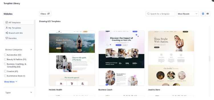 Pick from a range of modern, mobile-friendly templates made for small businesses — or start completely from scratch to create your own custom design.